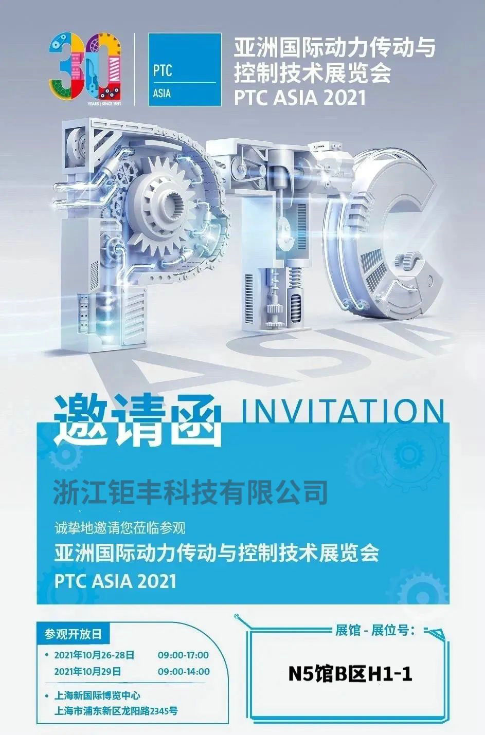 非常感谢您一直以来对388vip太阳集团科技的支持与厚爱!PTC ASIA亚洲国际动力传动与控制技术展览会将于2021年10月26日在上海新国际博览中心拉开帷幕!届时,我们将在N5馆B区H1-1展位恭候您的莅临,期盼您的参观指导,期待与您携手并进、共赢未来!